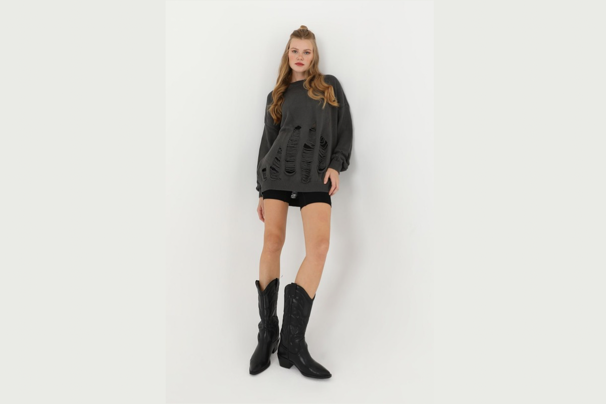 Kadın Basic Uzun T-Shirt -10271TUN